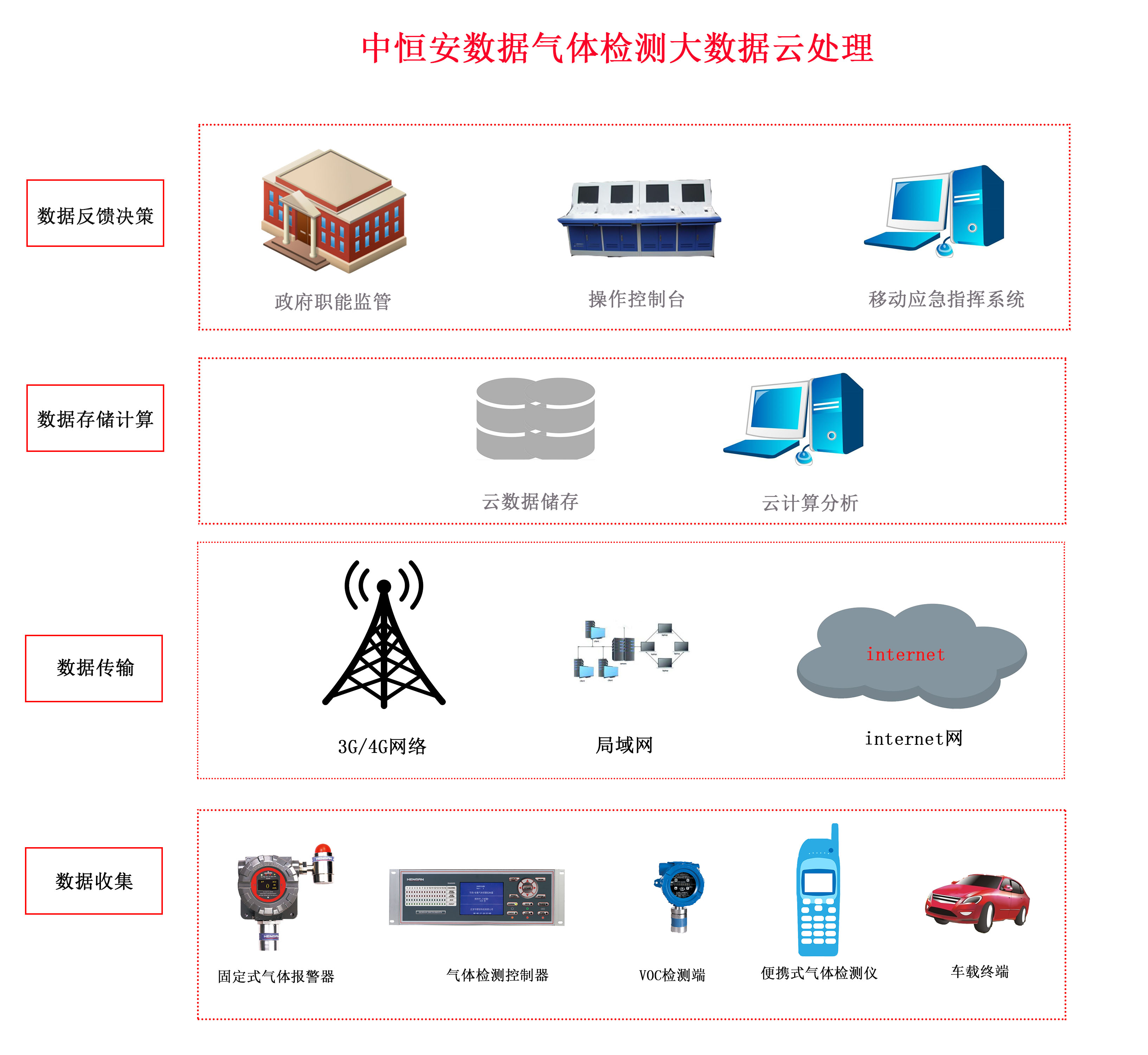 其終端設(shè)備包含:固定式氣體報(bào)警設(shè)備、固定源檢測(cè)控制器、VOC檢測(cè)端、便攜式氣體檢測(cè)儀、移動(dòng)車載終端。